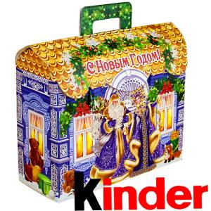 Замечательный состав сладостей с Киндер шоколадом и яркая сказочная упаковка-прекрасный выбор детского новогоднего подарка!