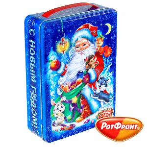 Невероятно красивая жестяная упаковка с наполнена лучшими конфетами и сладостями от легендарной фабрики Рот-Фронт.