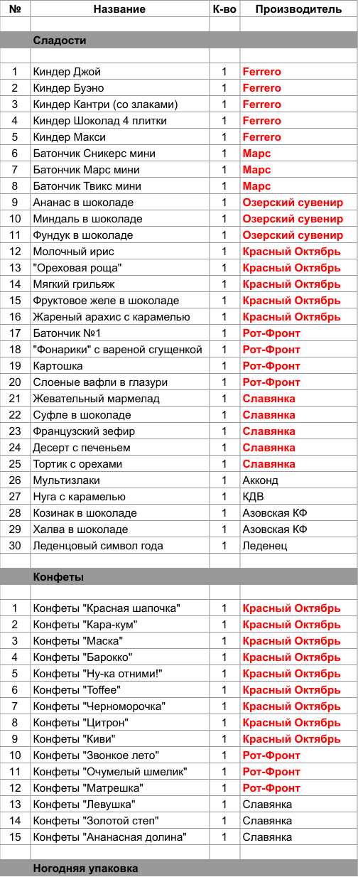 1. Проверить, можно ли внести изменения в состав подарка. Если нет, то скорее всего наборы были собраны еще летом из конфет, произведенных еще раньше