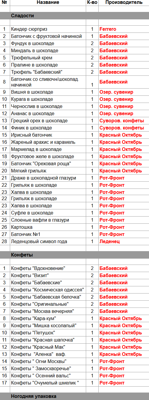 1. Проверить, можно ли внести изменения в состав подарка. Если нет, то скорее всего наборы были собраны еще летом из конфет, произведенных еще раньше